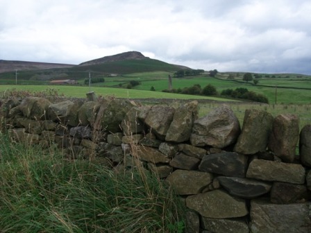 The trees opened out to fields, separated by fences made of flat stones. Geese and ducks puttered in the long grass. A horse lifted its head to look at me, became quickly bored and turned away. The large rock formation of Embsay Crag stood sentinel in the distance.