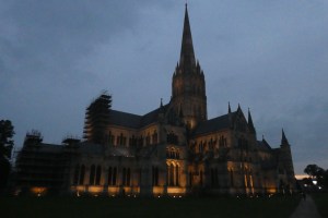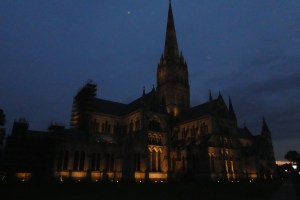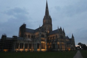 In Susan Howatch‘s series of books, mentioned in my last post, calling the cathedral Starbridge she writes: “We all came at last to Starbridge, radiant, ravishing Starbridge … beyond the roof of the nave, above the massive block of the tower, the spire itself was rising and rising and rising, yard after yard, foot after foot, inch after inch, upwards and upwards and upwards until at last it had tapered to the point which supported the cross.”