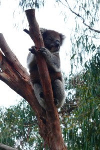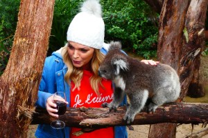There was a publicity shoot going on, with a glamorous model and a little koala. The koala performed for a while and then suddenly got sick of the whole thing and took off to the top of her tree, out of reach.