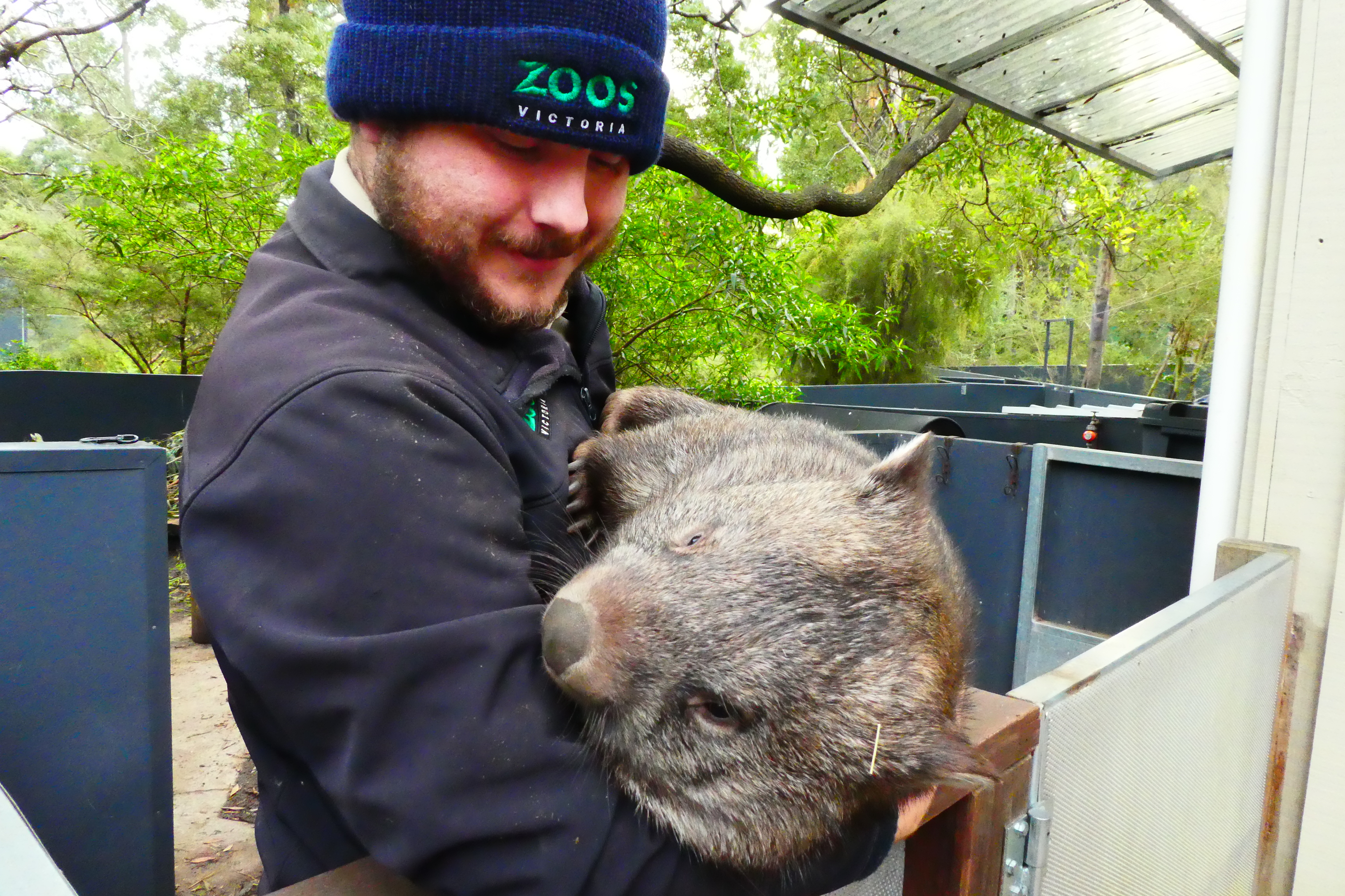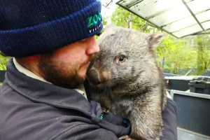 Gorgeous! Particularly like the emus peering over the fence and the wombat giving her keeper a wee kiss. So cute.