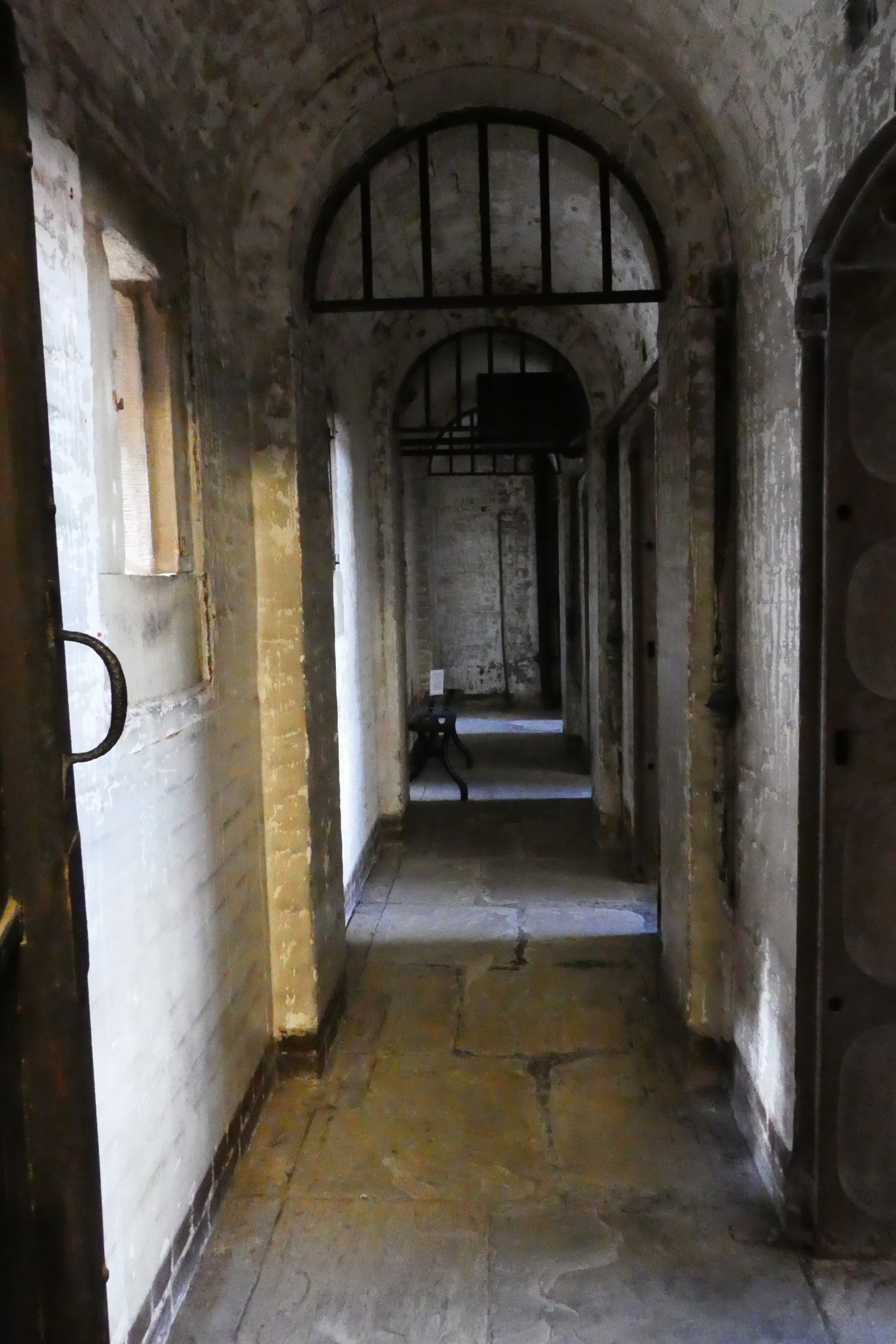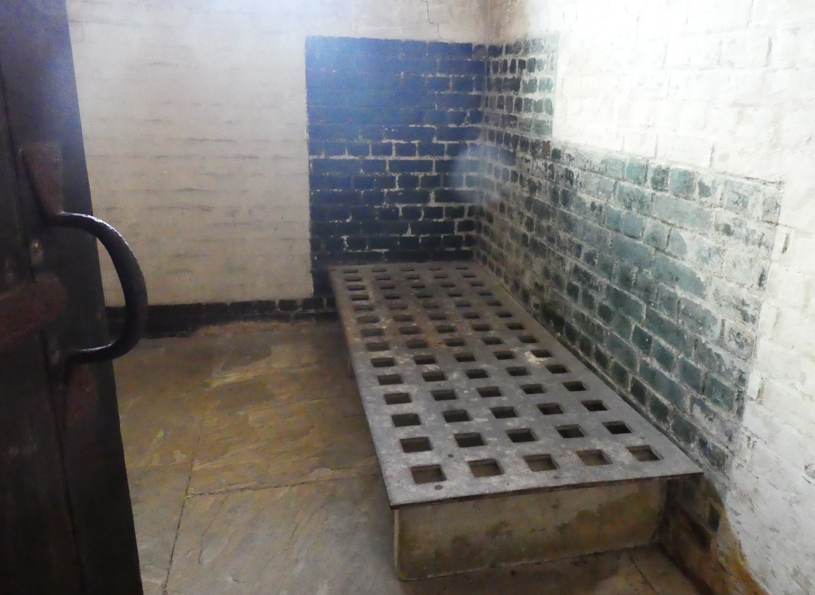 I don’t think you’d be too comfortable if you’d been caught with your hand in the till. The felons’ cells c1830 were protected by heavy oak doors, those on the first floor also by heavy iron gates. Each door had a small square inspection hole, and was closed with two strong bolts, just to make sure no-one made a dash for it. Each cell was provided with a cast-iron window, an iron bed-frame and a chamber pot.
