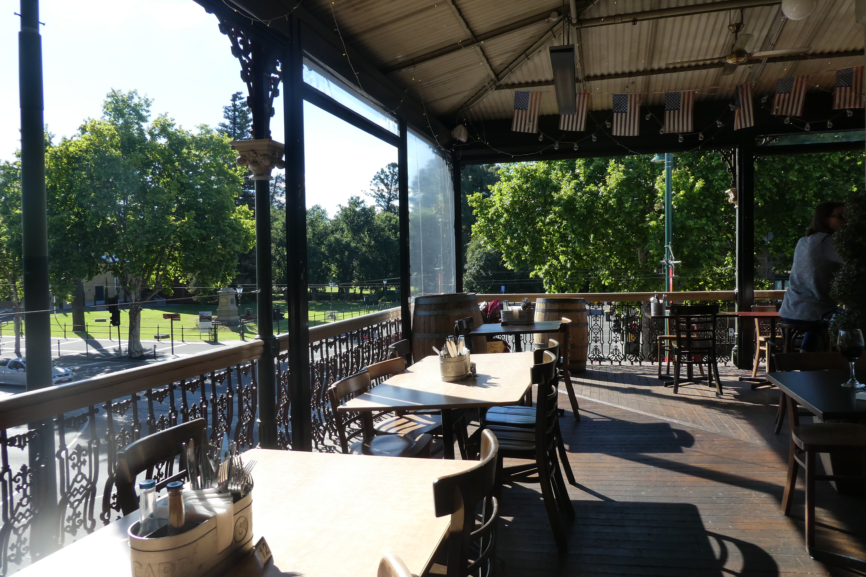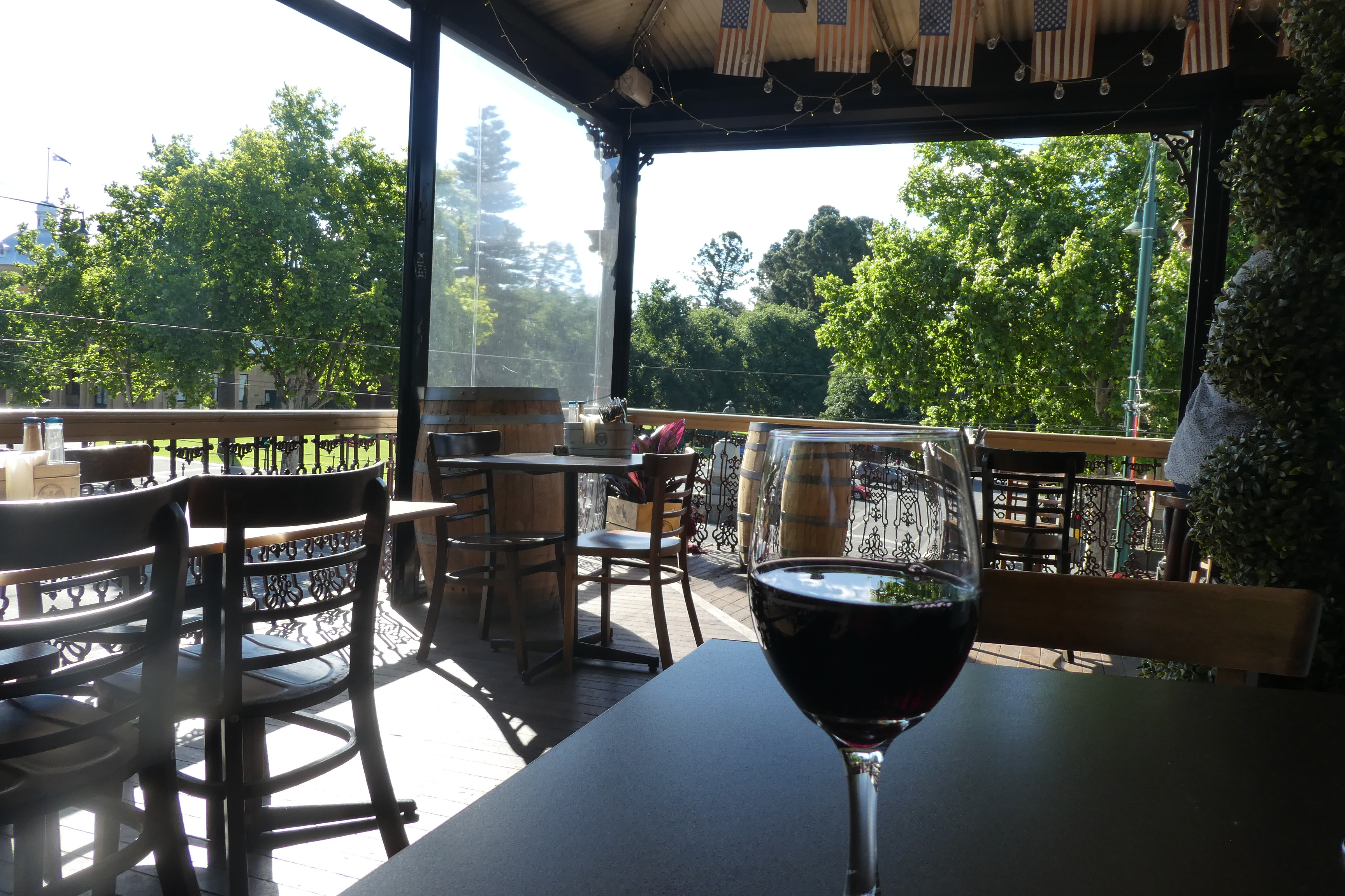 What better way to finish off the day than a glass of red on the balcony of the Shamrock Hotel.