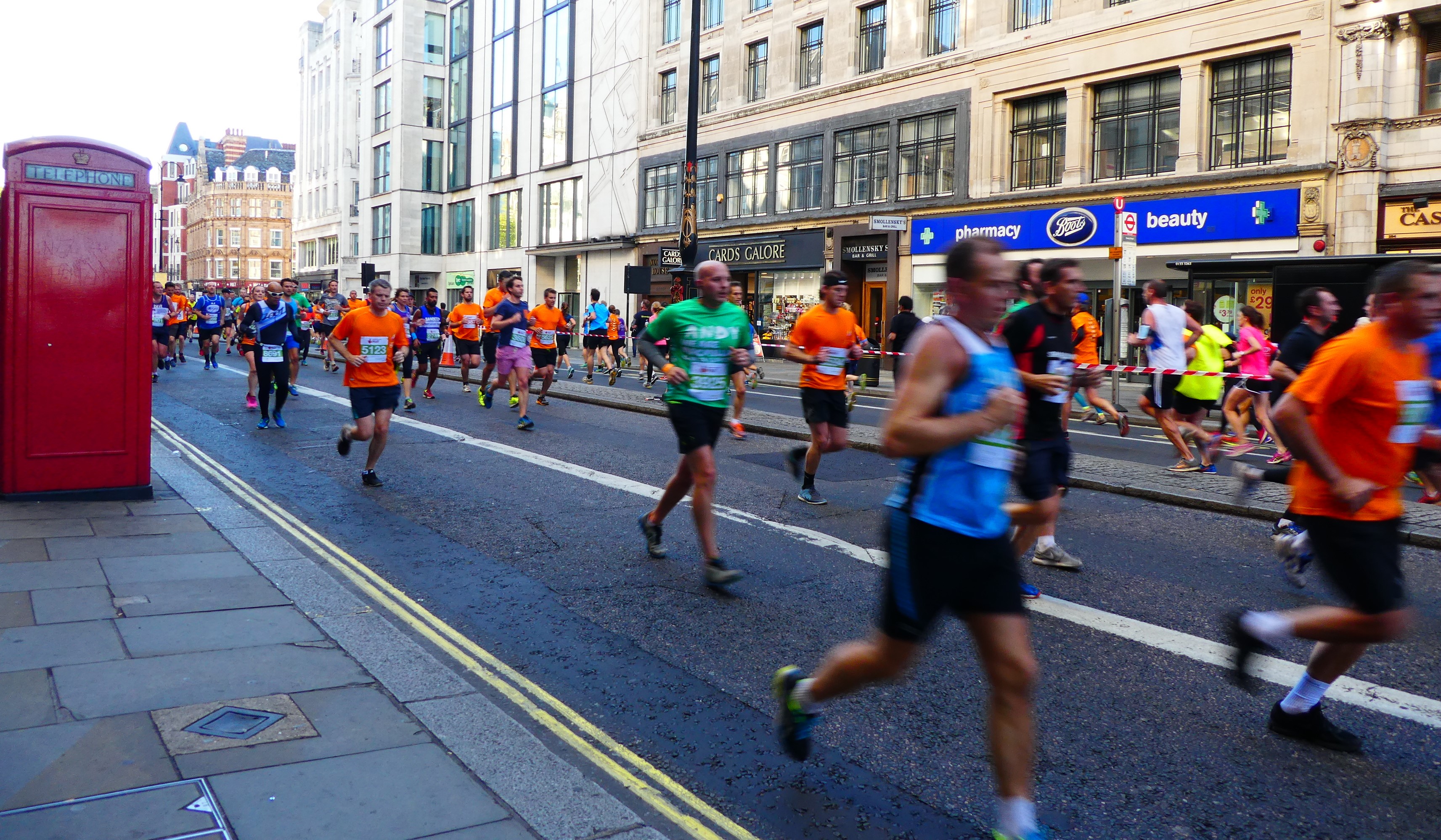 A group of us stood waiting for them to pass so that we could get to the other side of Strand but they kept coming, thousands of them, and we realised if we didn’t make a decision soon, we’d be there all day. Gritting out teeth, we headed out. One bloke gave me such a filthy look for getting in his way. I think I knocked a half a second off his time.