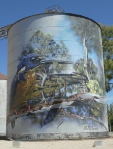 These two were painted by Jimmy Dvate. Educated at Monash University in Melbourne, he has painted in just about every state in Australia, as well as in Europe. His work highlights his passion for local flora and fauna, especially endangered species. He also painted, among others, the gorgeous depiction of draught horses at Goorambat, which I covered in a previous post.