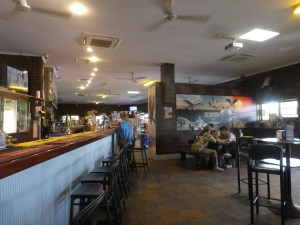 We stopped at an actual outback pub, the Corroboree Park Tavern, to pick up our picnic lunches for the cruise. The hotel has camping facilities, along with a variety of animals, including enclosures for their own water buffalo and a massive crocodile, which was hiding at the time.