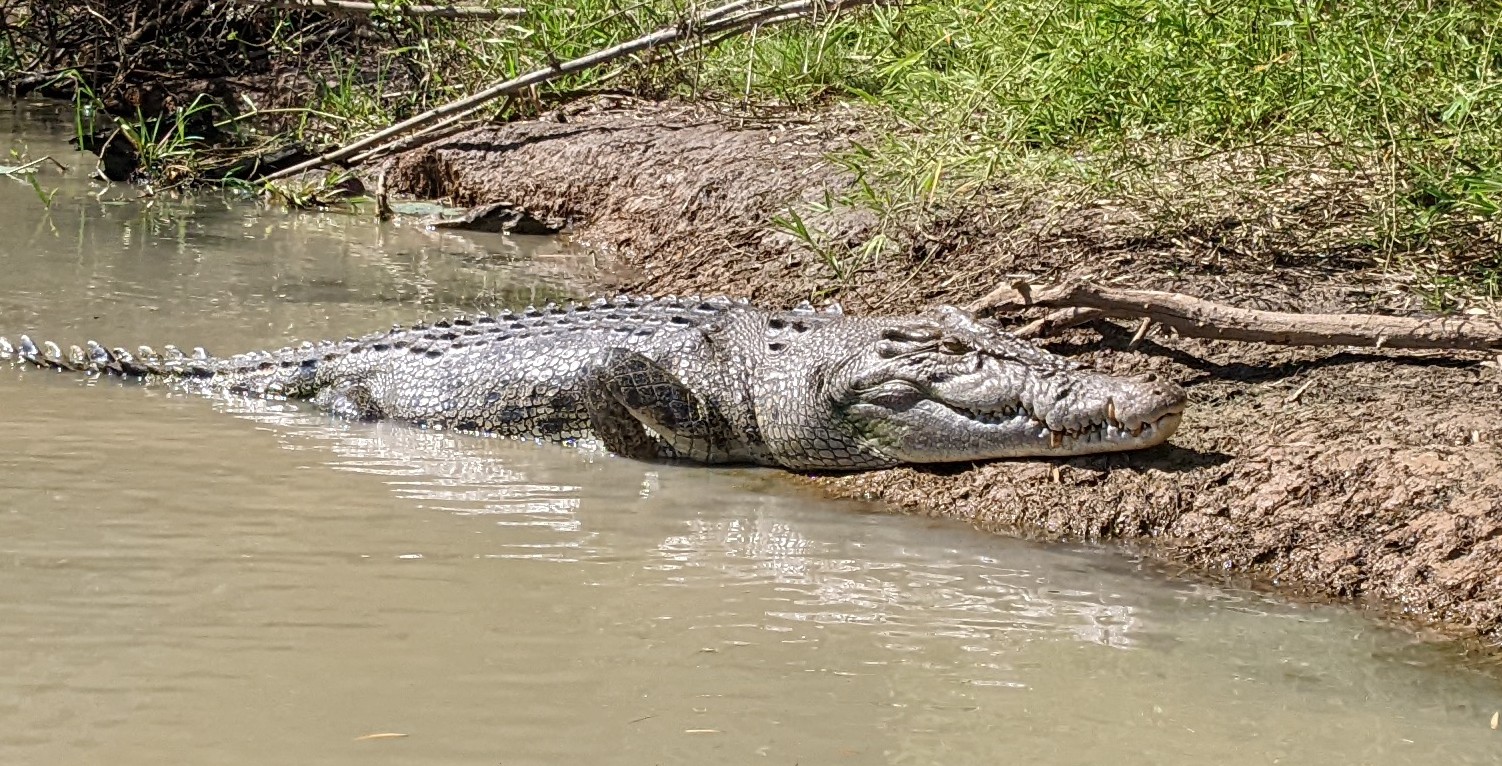 And then my day was made. We came upon a ‘salty’ (saltwater croc) having a snooze on the bank, his tail in the water to keep cool.